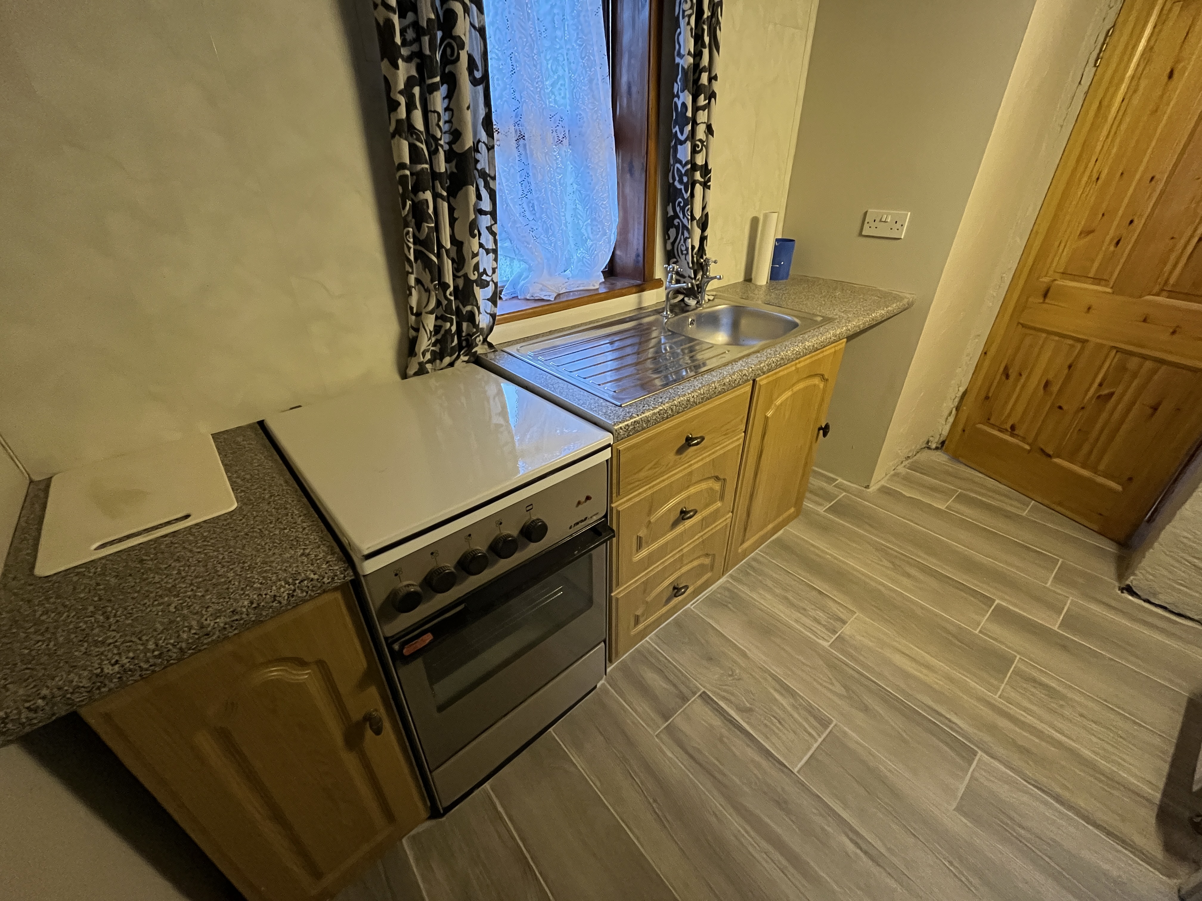 The accommodation comprises a traditional two-bedroom cottage with a kitchen, living area, and bathroom. In addition, the rental includes storage and an attached outbuilding. This combination of residential accommodation and outbuildings is seldom available and offers significant flexibility in a picturesque setting.
