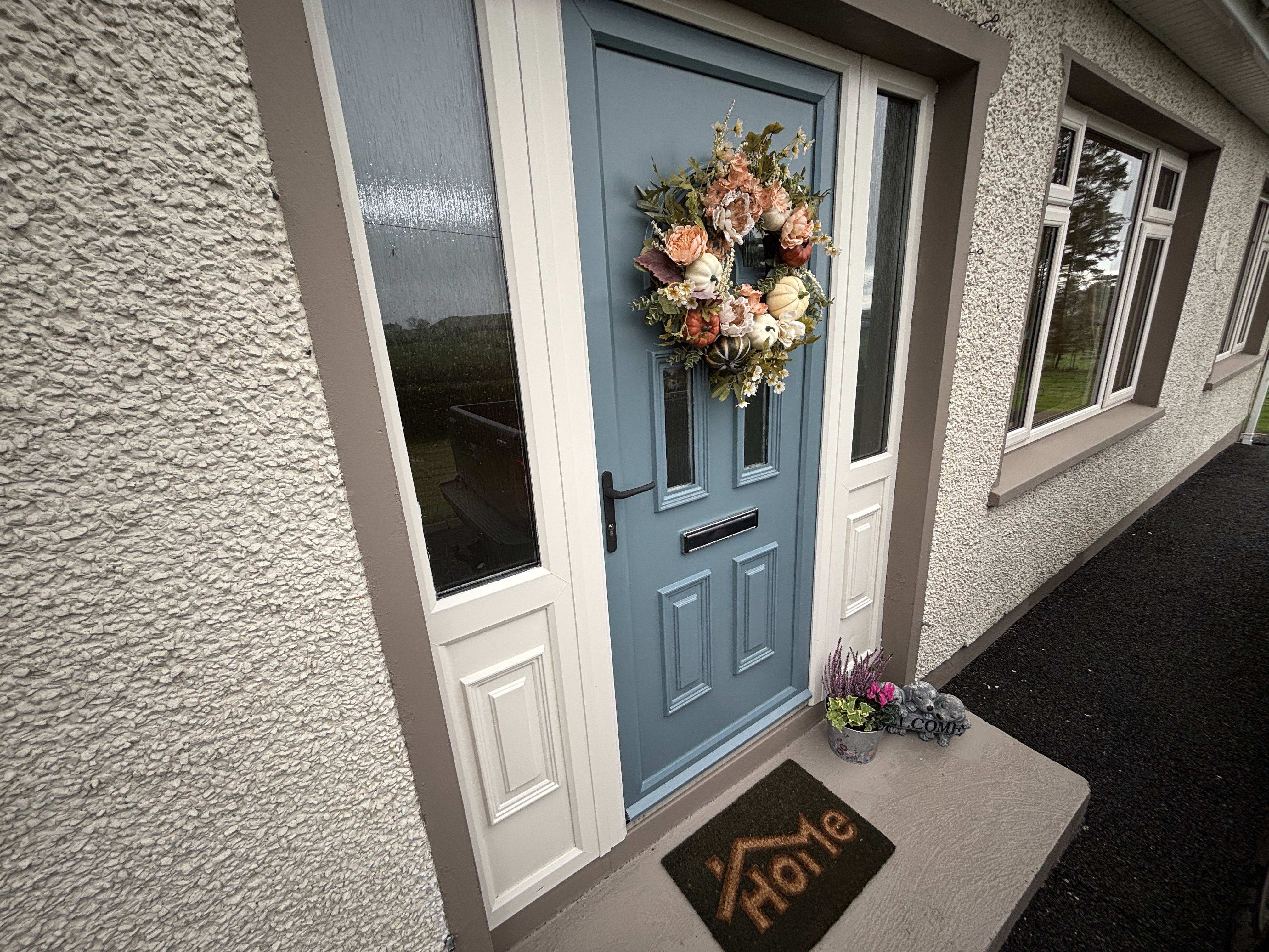 - uPVC double glazed front door with frosted glass inset and side lights to...