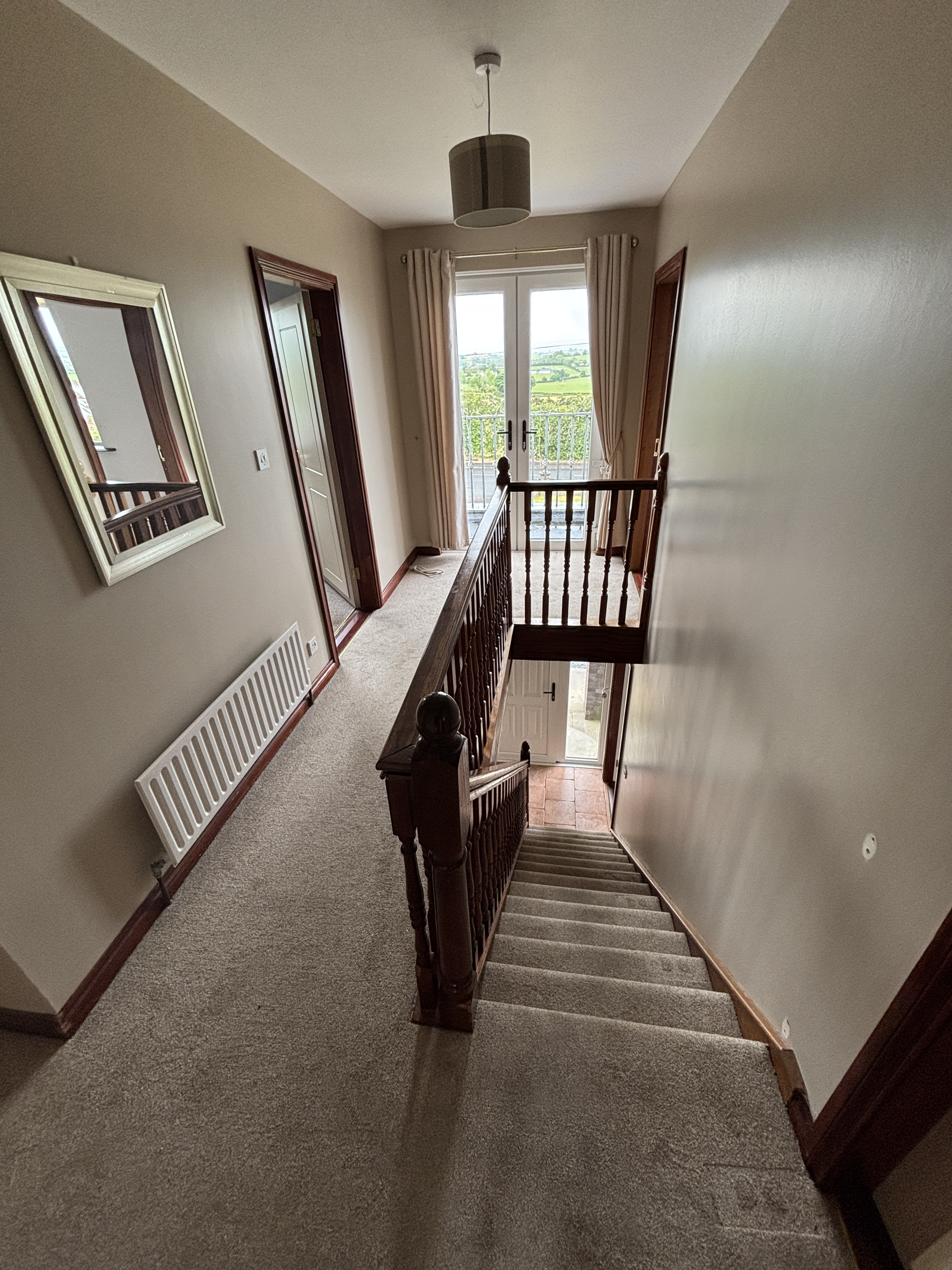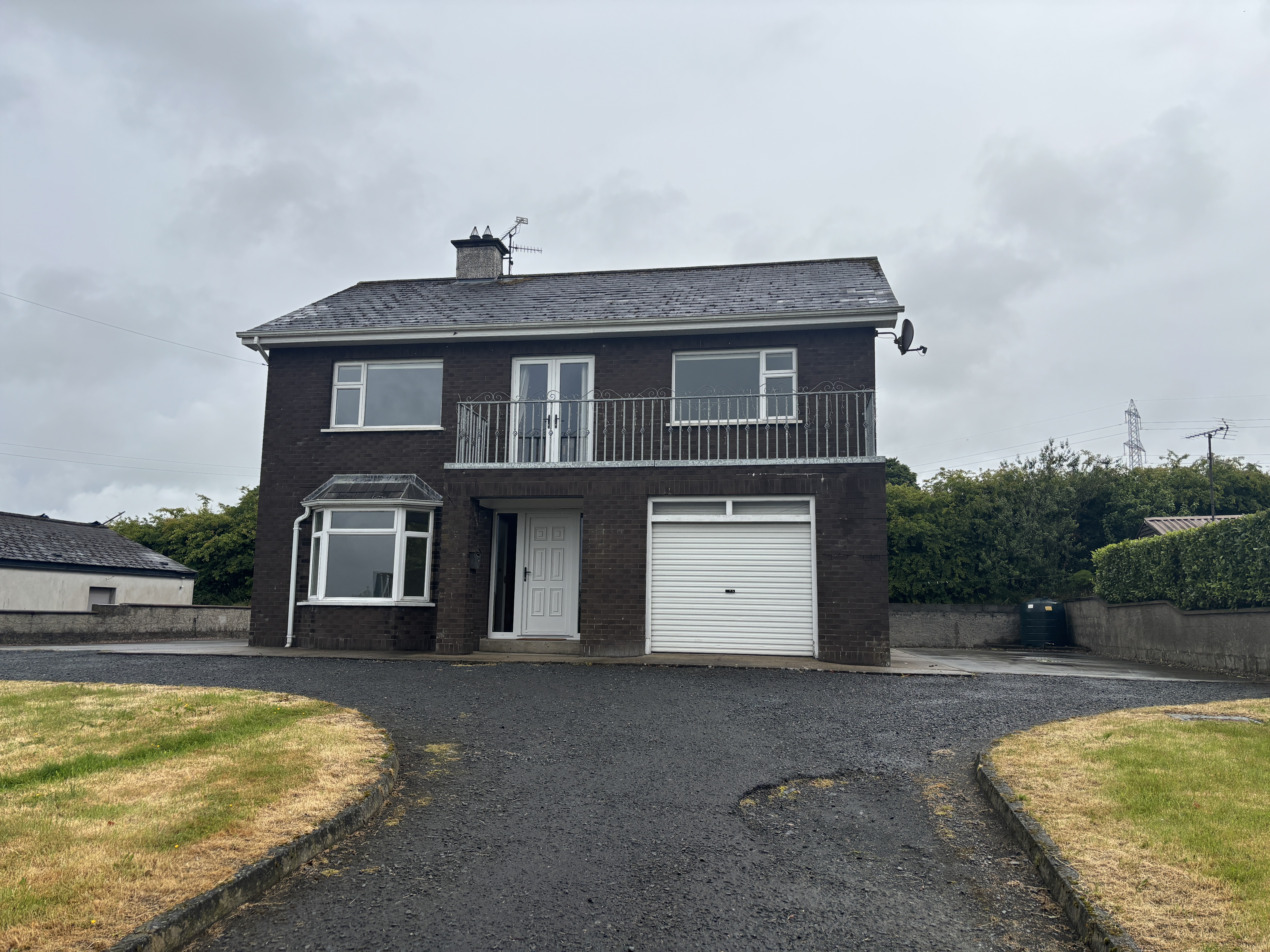 The home's design includes a balcony, adding a touch of elegance and offering views of the surrounding area. Located on Tullynaval Road, the property enjoys a peaceful setting while remaining within reach of local amenities and transport links.