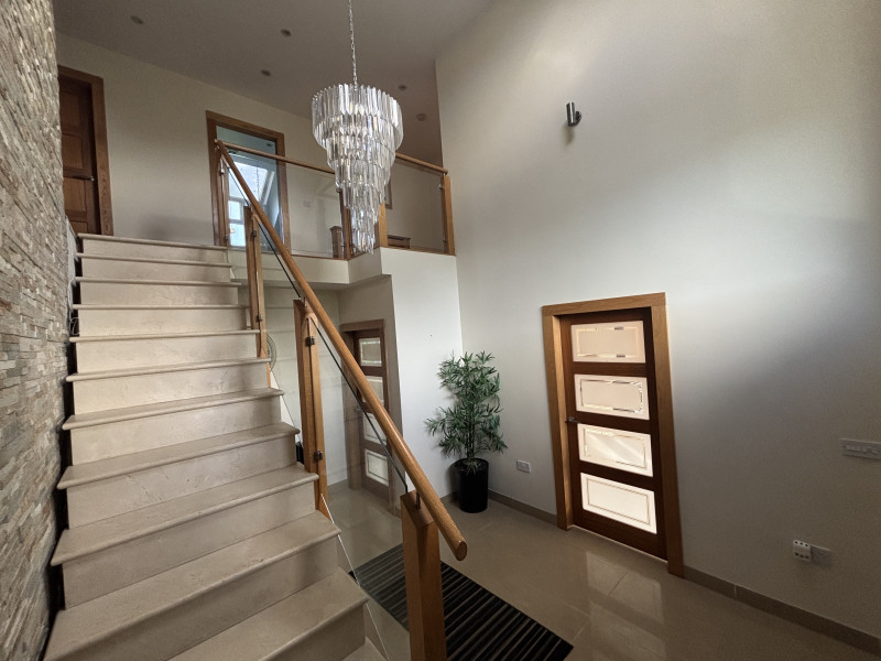 - A grand entrance with double solid wood doors, beautiful marble staircase, ceramic tiled flooring.